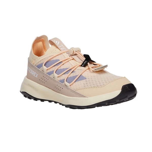 Auch mit Wasser kommt der synthetische Halbschuh problemlos zurecht. Durch das luftige Mesh-Gewebe sind deine Füße bei hohen Temperaturen immer optimal belüftet. Zugleich liegt das Mesh-Gewebe angenehm weich am Fuß! Die leichte EVA-Zwischensohle sorgt für ganztägigen Tragekomfort. Die Traxion-Gummilaufsohle gibt den Kids den nötigen Grip beim Spielen und Herumlaufen. Das Schnellschnürsystem ist kinderleicht zu bedienen. So sind die Schuhe für den nächsten Einsatz ruck zuck angezogen. Das Obermaterial besteht zu mindestens 50% aus recycelten Materialien. So hilft der Terrex Voyager 21 dabei, Plastikmüll zu vermeiden.