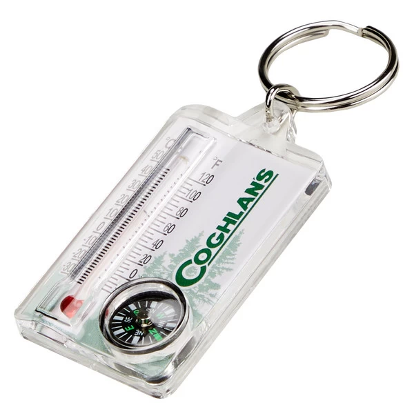 Ein schönes Geschenk und Gadget für den Trekkingrucksack oder die Jacke. Der Schlüsselanhänger ist ausgestattet mit einem Thermometer und einem Notkompass. Inkl. Schlüsselring zur Befestigung.