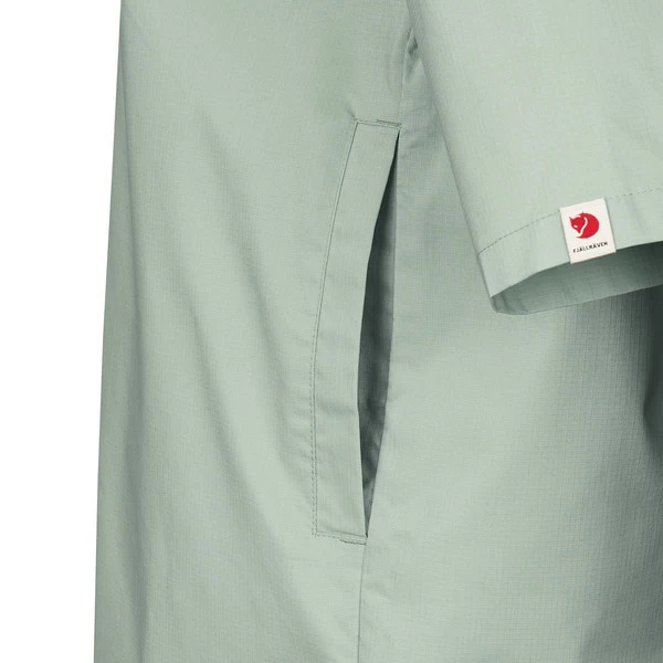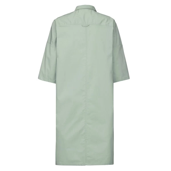 G-1000 Air Stretch bringt hervorragende Eigenschaften mit, wenn Langlebigkeit und Robustheit gefragt sind, das Material an warmen Tagen aber nicht zu dick sein darf. Das Mischgewebe ist nämlich durch seine Ripstop-Struktur super strapazierfähig, aber gleichzeitig auch luftdurchlässig und äußerst atmungsaktiv. In Kombination mit dem lässig-lockeren Schnitt des Kleides entsteht so eine angenehme Luftzirkulation am Körper, sodass Hitzestaus unterbunden werden. Die Mischung aus Bio-Baumwolle und recyceltem Polyester trocknet dazu sehr schnell, was vor allem auf Reisen Vorteile hat.