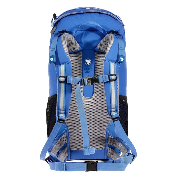 Praktisch ist auch der große L-förmige Frontzugriff (Klett- und RV-verschlossen), der das Be- und Entpacken unterwegs enorm erleichtert. Auch in Sachen Tragesystem steht der Junior seinem großen Bruder in nichts nach: Der Kajka Jr. ist mit sehr flachen und flexiblen Hüftflossen ausgerüstet. Diese bieten dem Träger viel Bewegungsfreiheit. Zusammen mit den Lastenkontrollriemen und den S-förmigen Schultergurten sorgen sie darüber hinaus für einen ausbalancierten, körpernahen Sitz.