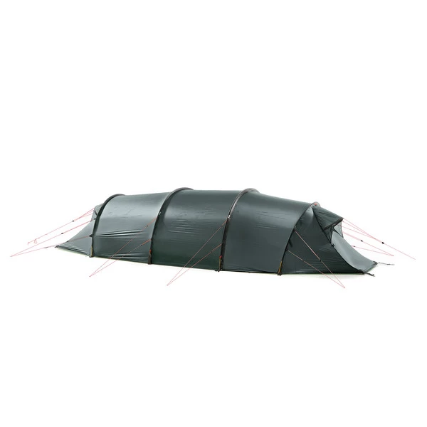 Großes Tunnelzelt mit zwei Apsiden. Geeignet für 2-3 Personen und Touren zu jeder Jahreszeit. Trotz der Größe ist es leicht genug, um auch bei Wanderungen im Rucksack transportiert zu werden.