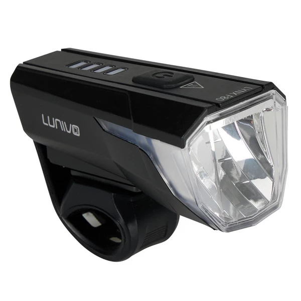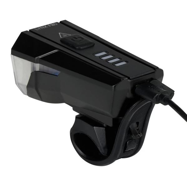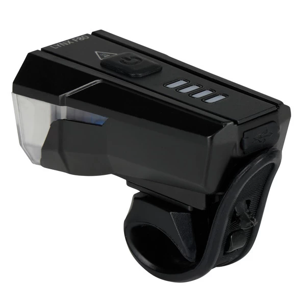 Der Lynx F80 Frontscheinwerfer liefert dir eine Lichtausbeute bis 80 Lux. Geht es hauptsächlich ums Gesehen-Werden im städtischen Bereich (und nicht so sehr ums wirkungsvolle Weg-Ausleuchten), lässt sich die Intensität der Frontlampe auch herunterregeln. Bis zu 20 Stunden Leuchtdauer stehen dir dann zur Verfügung. Bei Wegen ohne viel Straßenbeleuchtung sorgt ein großer Lichtkegel mit 80 Lux und bis 30 Meter dafür, dass du sicher vorankommst.
