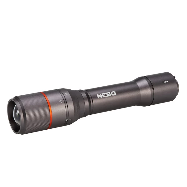 Auch der Lampenkopf ist drehbar. Dadurch bestimmst du den Abstrahlwinkel und kannst zwischen Flächenausleuchtung und Suchspot stufenlos wählen. Hinter der Kappe am Griffende versteckt sich der Micro-USB-Ladeanschluss und der USB-Steckplatz, der die Taschenlampe zur Powerbank werden lässt.