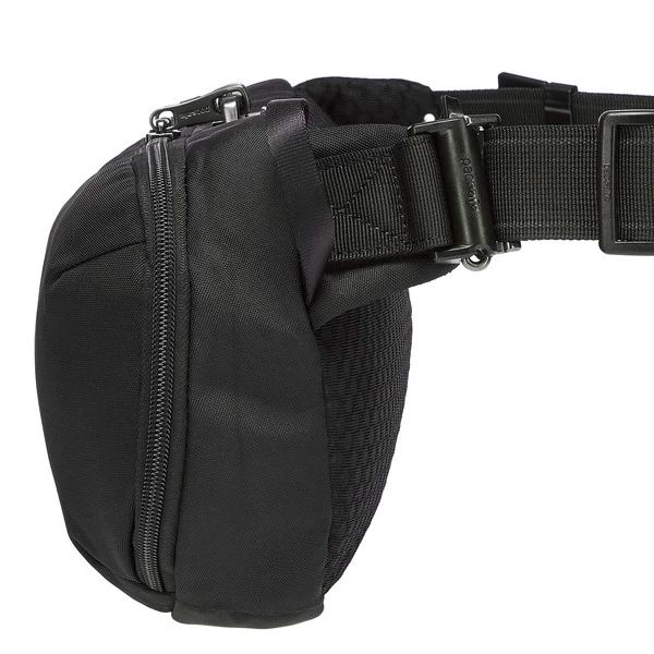 - eXomesh Slashguard: Ein unsichtbares Edelstahlgewebe schützt die Tasche vor dem Aufschlitzen