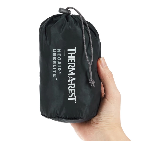 Auch im Packmaß sprengt die UberLite alle bisherigen Grenzen. Sie lässt sich kleiner als jede andere NeoAir verpacken und bringt es dadurch auf eine Größe von lediglich 15 x 9 cm. Der Komfort bleibt jedoch der gleiche, denn mit 6,4 cm Dicke werden auch unebene Schlafplätze zuverlässig glattgebügelt.